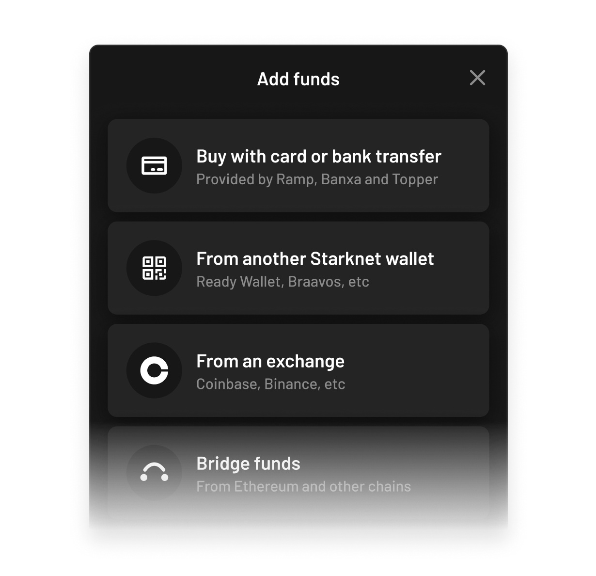 Use Apple Pay, transfer from a bank account, or send crypto from another wallet or exchange in seconds.